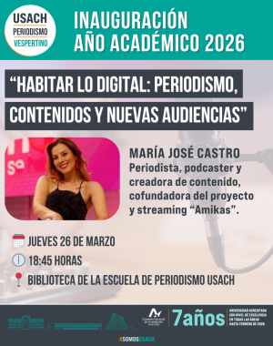 Te invitamos a ver las “V Jornadas de Comunicación Pública: Informar en contextos de incertidumbre”, un encuentro organizado por la Escuela de Periodismo de la Universidad de Santiago de Chile junto al CECOMP y el Magíster en Ciencias de la Comunicación, que reúne a investigadores, estudiantes y organizaciones de la sociedad civil para reflexionar sobre cómo los medios, las audiencias y el periodismo enfrentan hoy escenarios marcados por la desinformación, la disputa por la verdad y